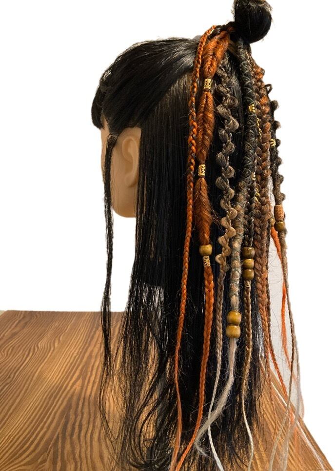 ⚫︎エクステの毛が三つ編みからピンピン出てくることがあります。気になる時は本体を傷付けない様に出た部分のエクステだけをハサミで切って整えてください。